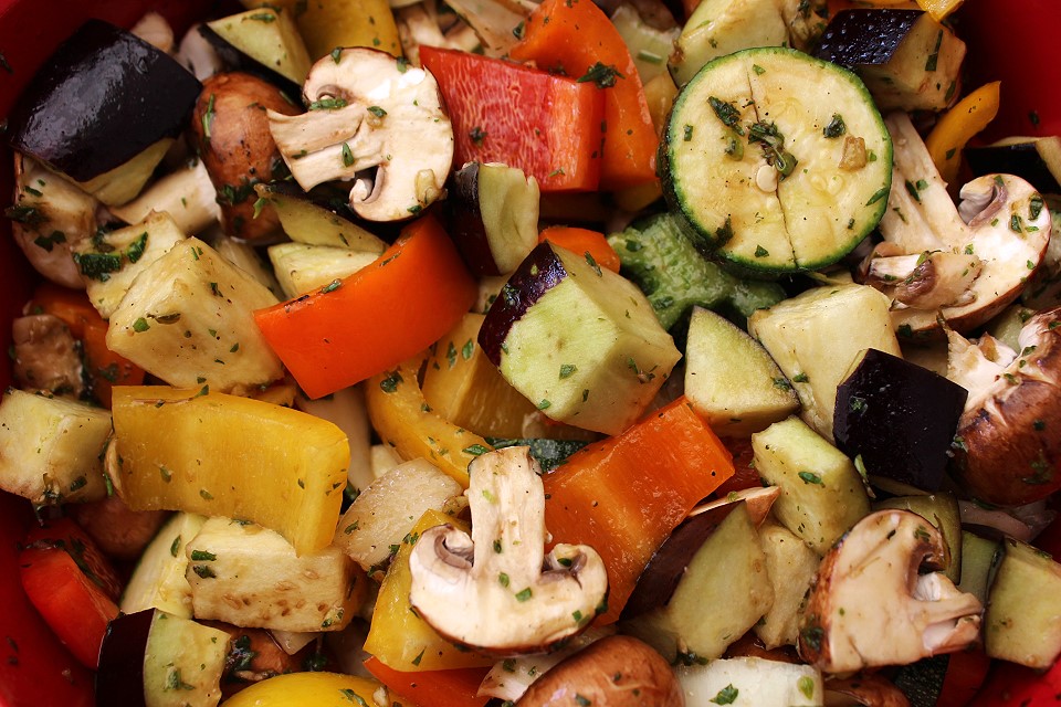 Gemüse aus dem Backofen – mediterran schmeckt richtig lecker z.B. als Grill-Beilage zu veganen Grillsteaks, oder zu frischem Brot
