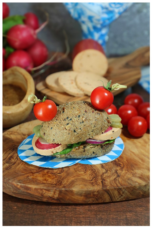 Ob kalt als Oktoberfest Fingerfood / Mini-Laugenburger, auf einer Scheibe Brot, warm angebraten oder überbacken. Dabei ist er nicht nur vegan, sondern auch glutenfrei, frei von tierischen Inhaltsstoffen und unnötigen Zusätzen, eine bewusste Wahl für alle, die auf Genuss setzen, ohne Kompromisse bei Nachhaltigkeit und Gesundheit einzugehen.