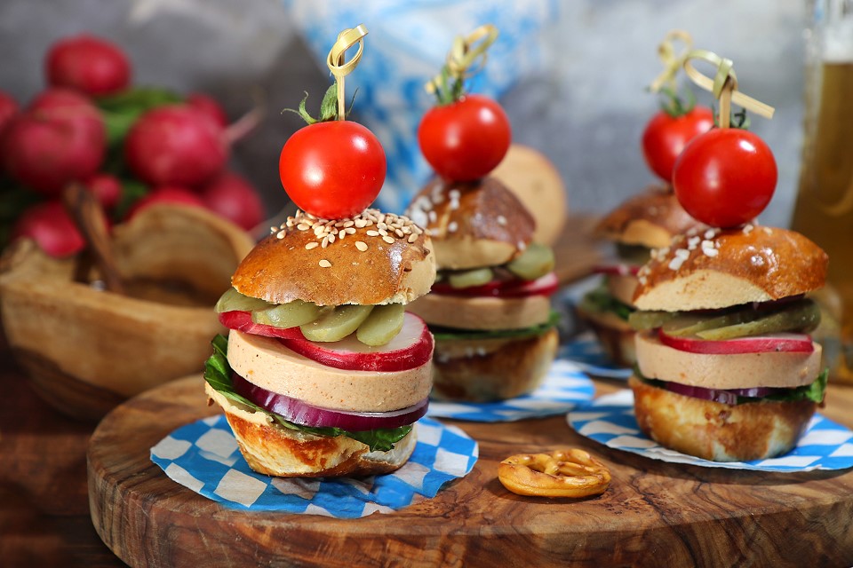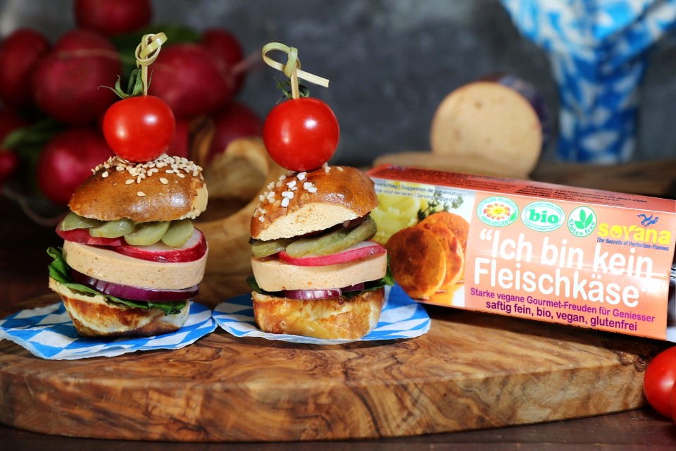 »Soyana „Ich bin kein Fleischkäse“ ist dabei die Hauptzutat meiner kleinen bayerischen Häppchen für eure Oktoberfest-Party. Zusammen mit frischen Laugenbrötchen, knackigem Salat, Tomate, Gurke und Radieschen entstehen handliche Mini-Burger, die sich (nicht nur) perfekt für die Wiesn-Zeit eignen.