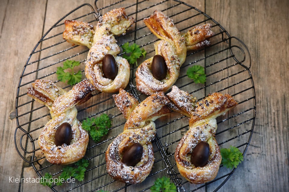 Pistazien-Blätterteig-Osterhasen backen